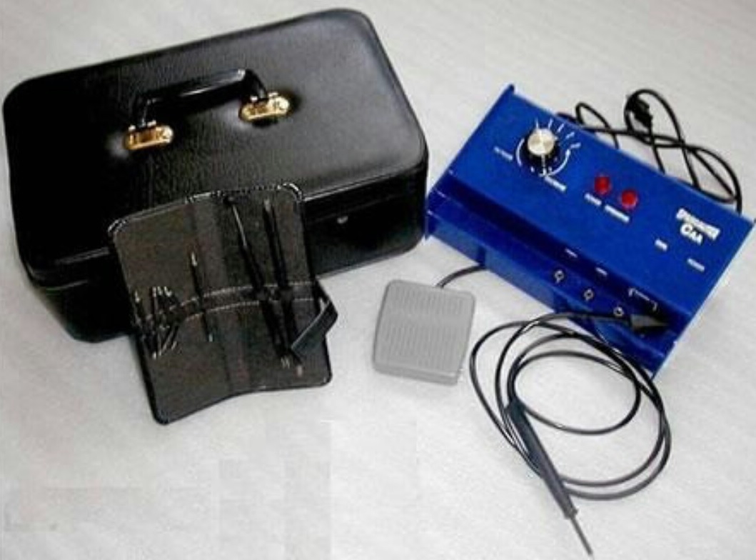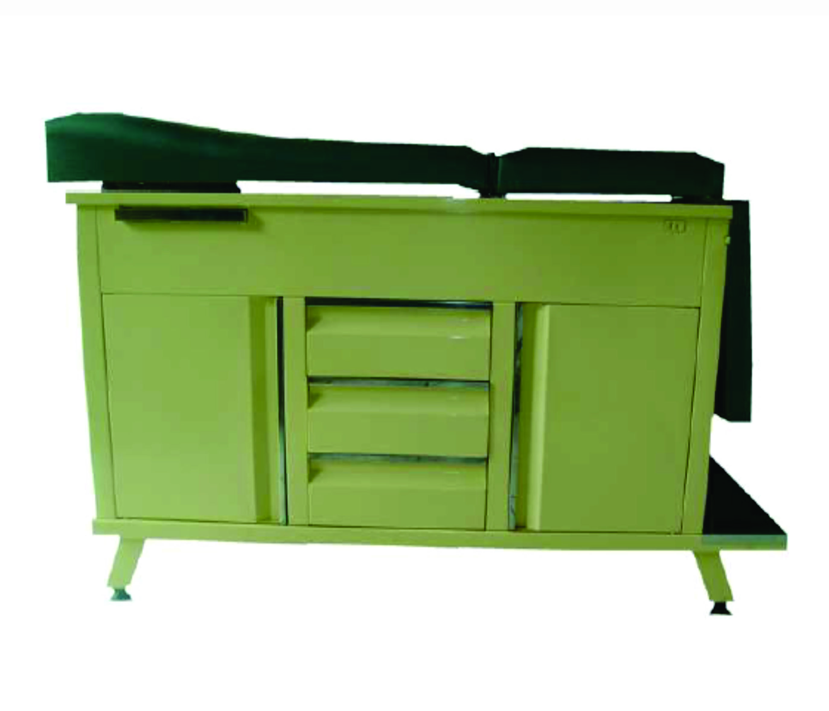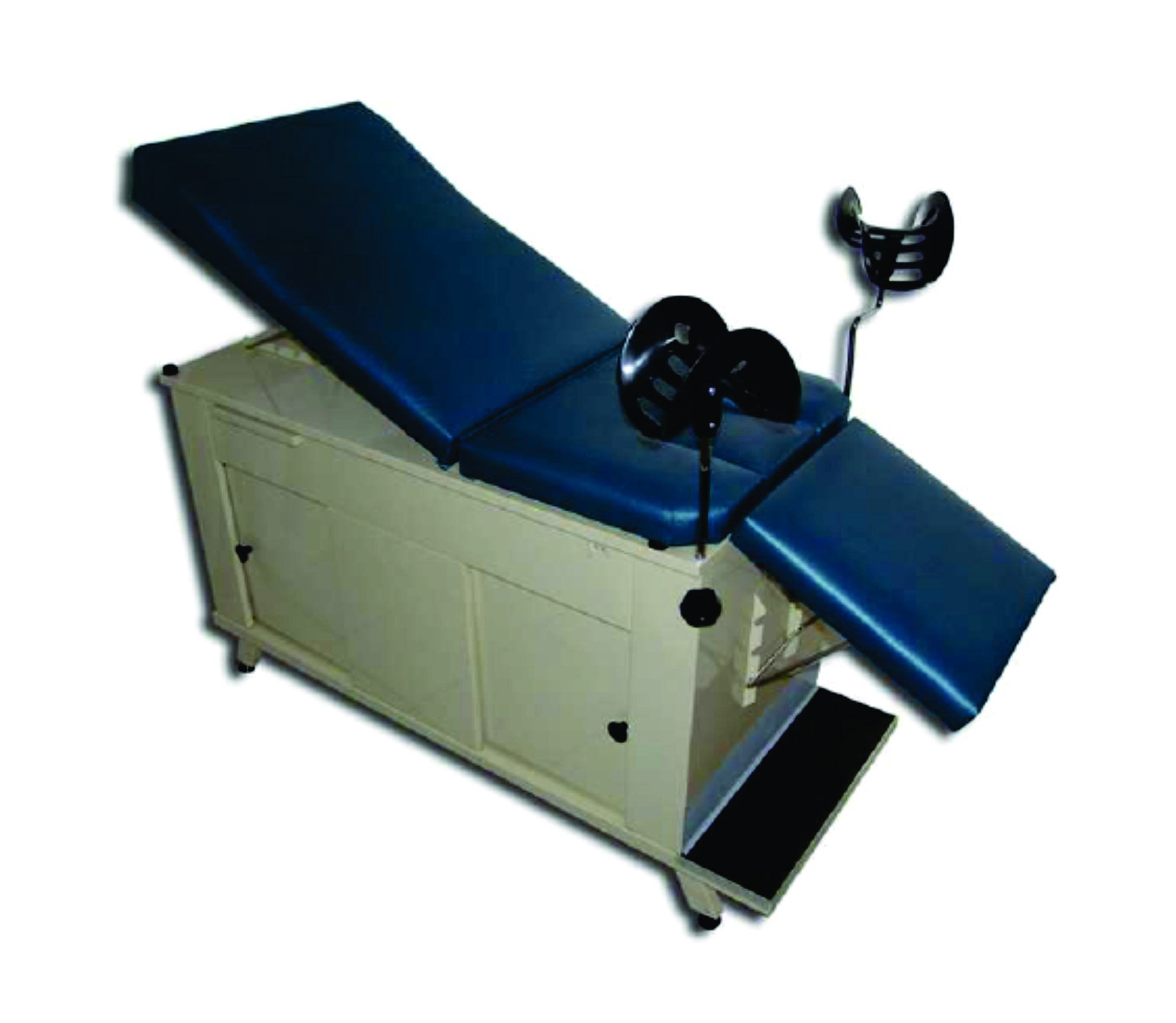 Juego de 5 piezas, mesa de exploración, vitrina doble, gabinete doble, banco giratorio, bote basurero.
